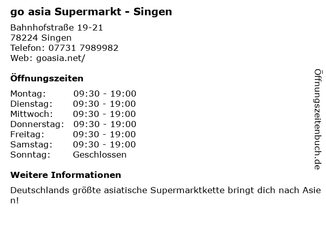| Öffnungszeiten go asia Supermarkt - Singen in Singen anzeigen | |
