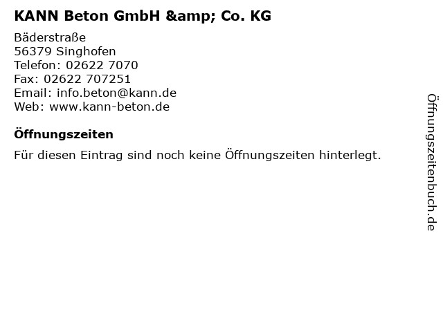 | Öffnungszeiten KANN Beton GmbH & Co. KG in Singhofen anzeigen | |
