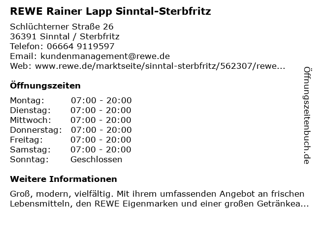 Branchen & Suchbegriffe zu REWE Rainer Lapp Sinntal-Sterbfritz:lapp, rainer, rewe, sinntal, sterbfritz |