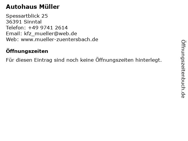 | Öffnungszeiten Autohaus Müller in Sinntal anzeigen | |