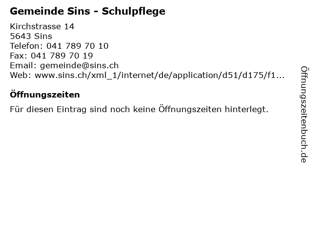 | Öffnungszeiten Gemeinde Sins - Schulpflege in Sins anzeigen | |