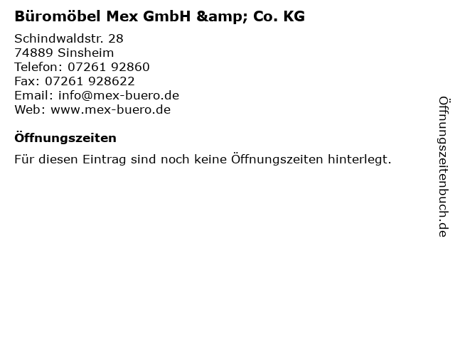 | Öffnungszeiten Büromöbel Mex GmbH & Co. KG in Sinsheim anzeigen | |