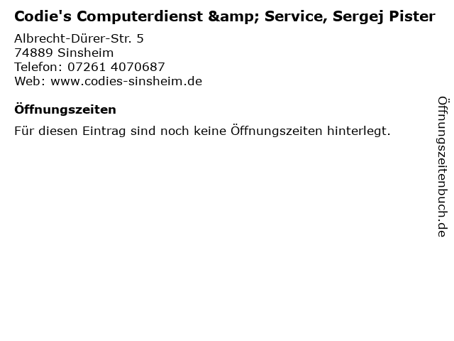 | Codie's Computerdienst & Service, Sergej Pister anrufen | |