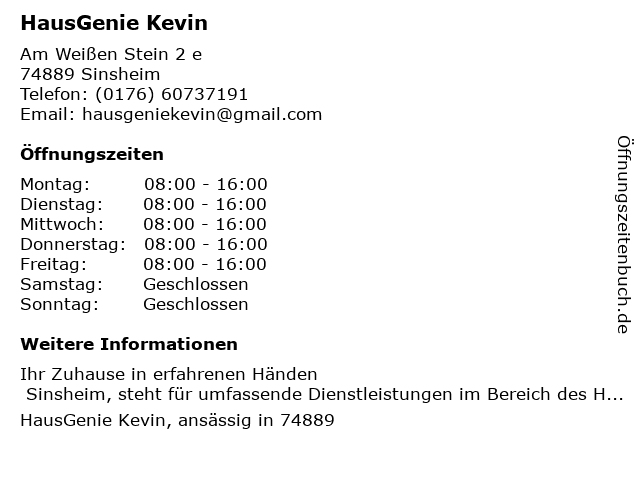| Öffnungszeiten HausGenie Kevin in Sinsheim anzeigen | |