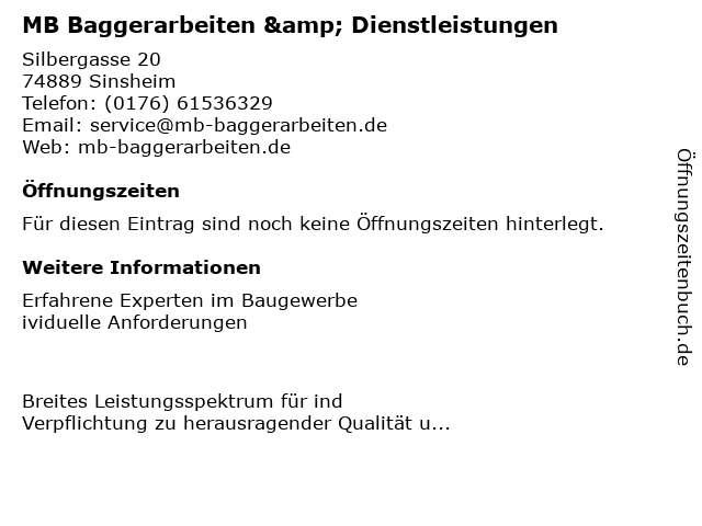 | MB Baggerarbeiten & Dienstleistungen anrufen | |