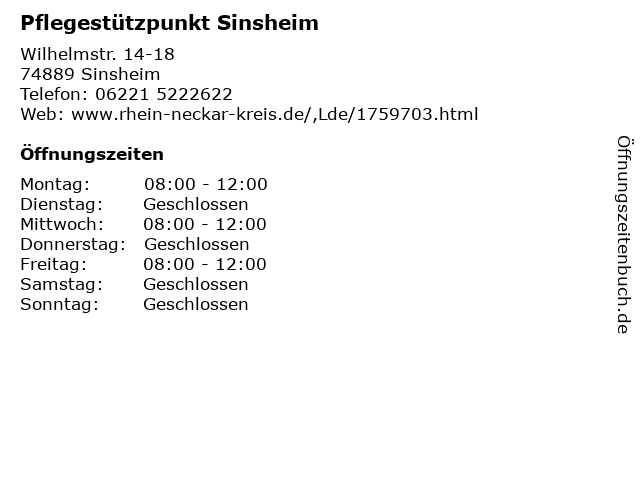 | Öffnungszeiten Pflegestützpunkt Sinsheim in Sinsheim anzeigen | |