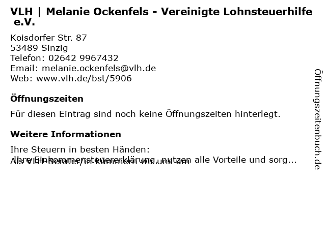 | VLH | Melanie Ockenfels - Vereinigte Lohnsteuerhilfe e.V. anrufen | |