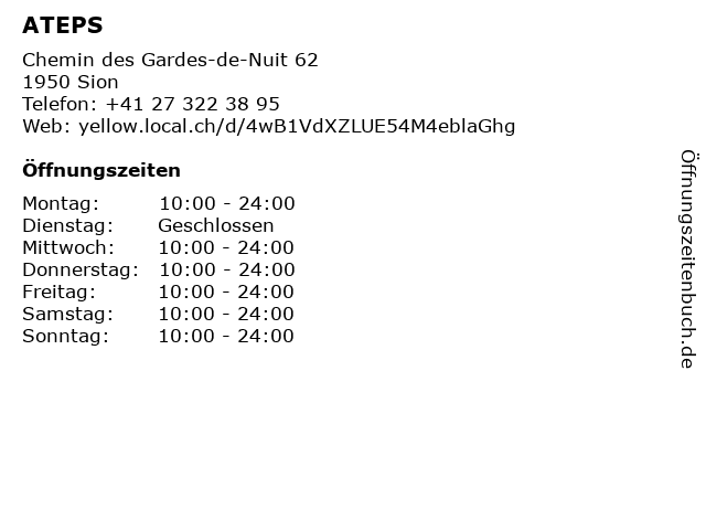| Öffnungszeiten ATEPS in Sion anzeigen | |