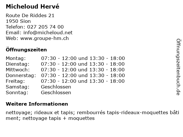 | Öffnungszeiten Micheloud Hervé in Sion anzeigen | |