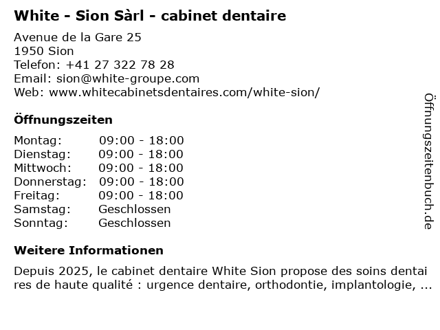 Branchen & Suchbegriffe zu White - Sion Sàrl - cabinet dentaire:blanchiment, cabinet, cabinet dentaire, carries, chirurgie, chirurgie orale, couronnes, dentaire, dents de sagesses, détartrage, facettes, hygiène, implants, interventions, médecins-dentiste, orthodontie, sion, soins, soins dentaires, sàrl, traitement, urgences dentaires, white |