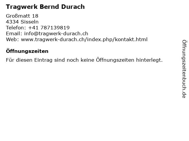 | Öffnungszeiten Tragwerk Bernd Durach in Sisseln anzeigen | |