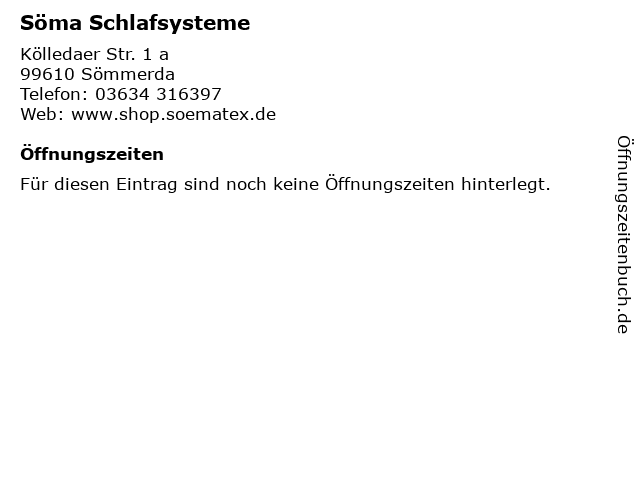 | Öffnungszeiten Söma Schlafsysteme in Sömmerda anzeigen | |