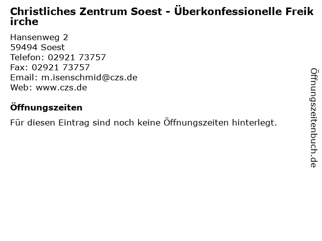 | Christliches Zentrum Soest - Überkonfessionelle Freikirche anrufen | |