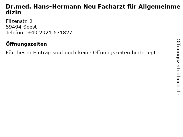 | Dr.med. Hans-Hermann Neu Facharzt für Allgemeinmedizin anrufen | |