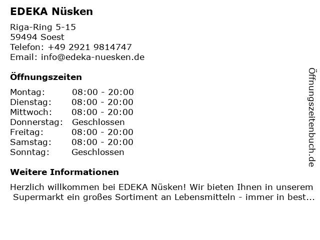 | Öffnungszeiten EDEKA Nüsken in Soest anzeigen | |