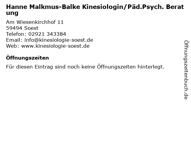 | Hanne Malkmus-Balke Kinesiologin/Päd.Psych. Beratung anrufen | |