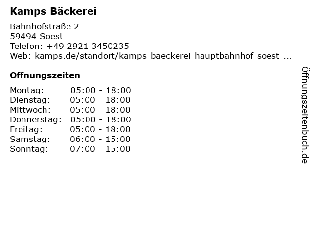 | Öffnungszeiten Kamps Bäckerei in Soest anzeigen | |