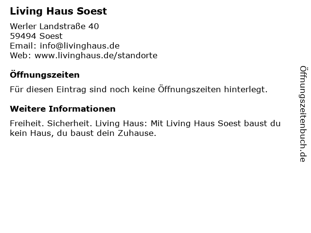 | Öffnungszeiten Living Haus Soest in Soest anzeigen | |