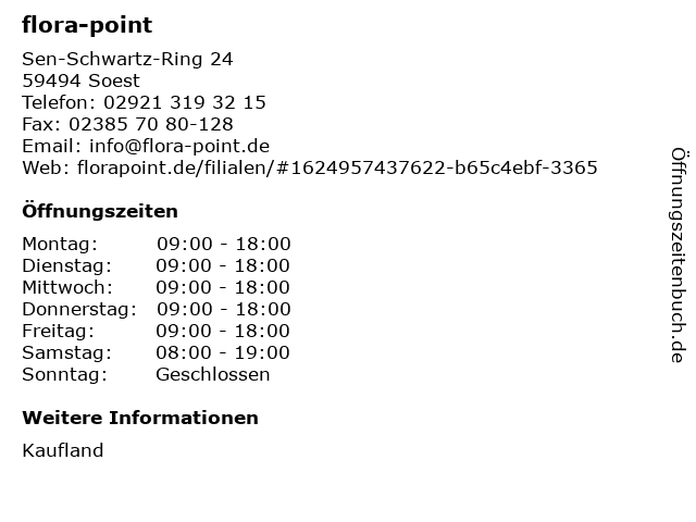 | Öffnungszeiten flora-point in Soest anzeigen | |