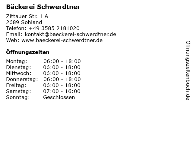 | Öffnungszeiten Bäckerei Schwerdtner in Sohland anzeigen | |