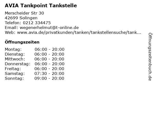 | Öffnungszeiten AVIA Tankpoint Tankstelle in Solingen anzeigen | |