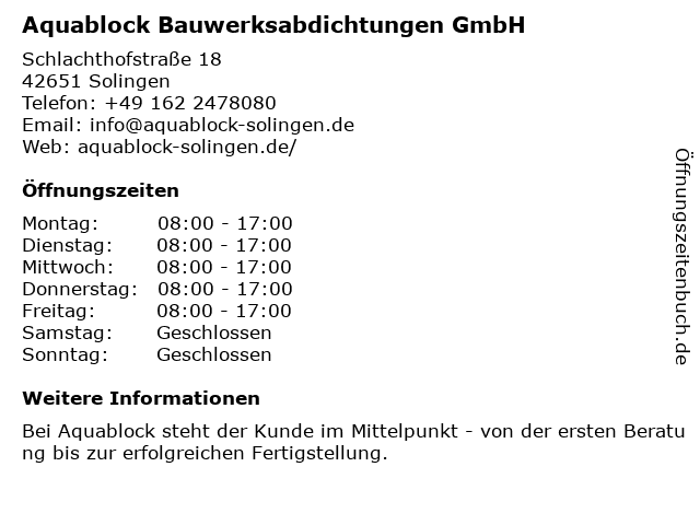 2 Waldemar Lukasiak Sanierungen von Gebäuden (Entfernung: 3,74 km) Adolf-Kolping-Str. 48, 42719 Solingen 6 ISOTEC Fachbetrieb, Abdichtungstechnik Klein GmbH (Entfernung: 14,41 km) Telleringstr. 24, 40597 Düsseldorf |