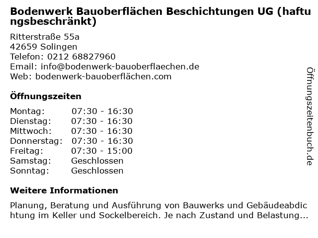 | Branchen & Suchbegriffe zu Bodenwerk Bauoberflächen Beschichtungen UG (haftungsbeschränkt):anbieter für bodenbelag, bauoberflächen, beschichtungen, bodenleger, bodenwerk, fußbodenarbeiten, haftungsbeschränkt, ug |