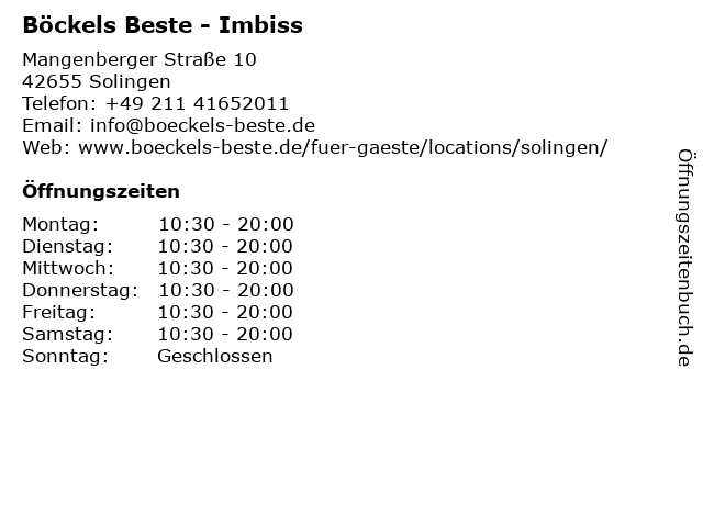 | Adresse Böckels Beste - Imbiss in Solingen anzeigen |