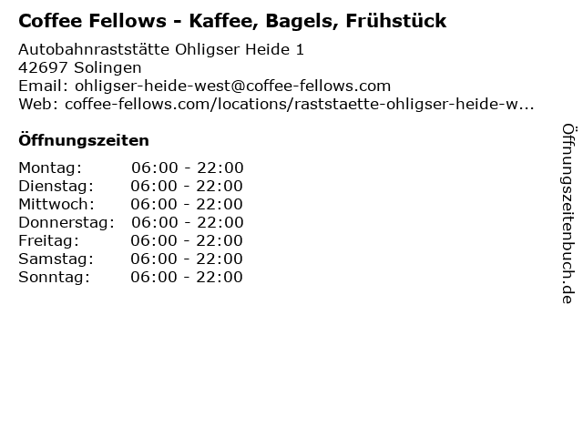 | Öffnungszeiten Coffee Fellows - Kaffee, Bagels, Frühstück in Solingen anzeigen | |