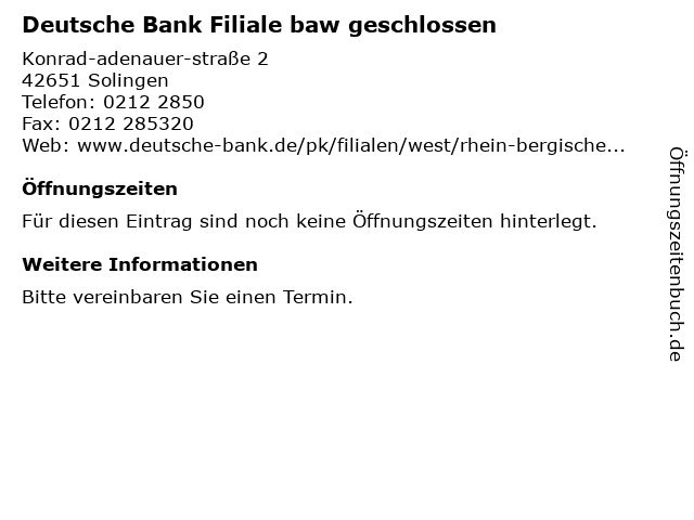 | Deutsche Bank Filiale baw geschlossen anrufen | |