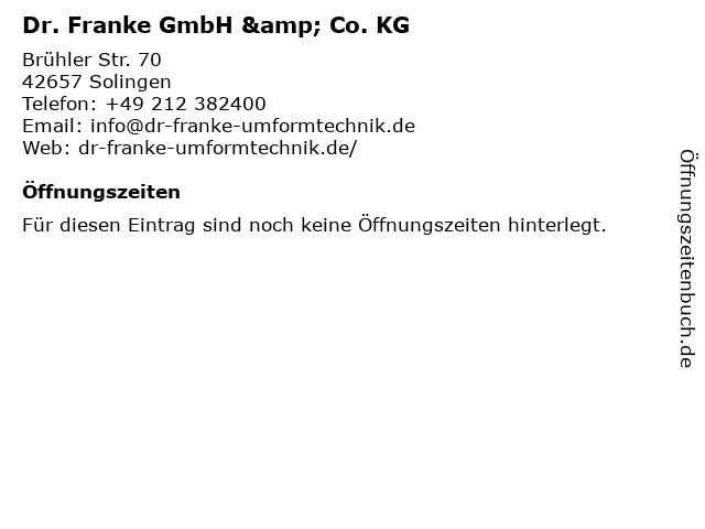 | Öffnungszeiten Dr. Franke GmbH & Co. KG in Solingen anzeigen | |