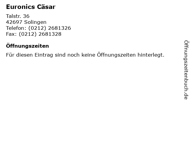 | Öffnungszeiten Euronics Cäsar in Solingen anzeigen | |