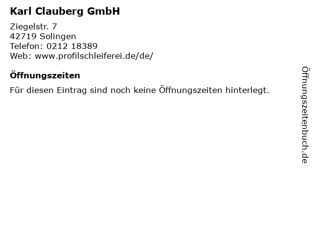 | Öffnungszeiten Karl Clauberg GmbH in Solingen anzeigen | |