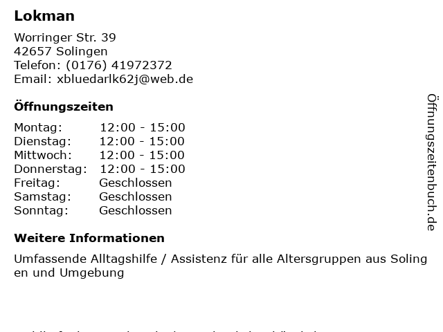 | Öffnungszeiten Lokman in Solingen anzeigen | |