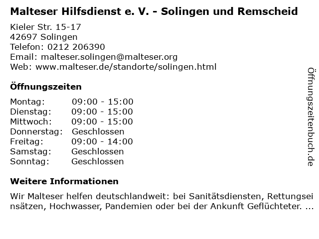 Branchen & Suchbegriffe zu Malteser Hilfsdienst e. V. - Solingen und Remscheid:e., hilfsdienst, malteser, v. |