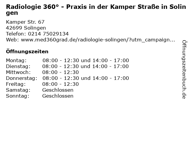 Branchen & Suchbegriffe zu Radiologie 360° - Praxis in der Kamper Straße in Solingen:360°, kamper, praxis, radiologie, straße |