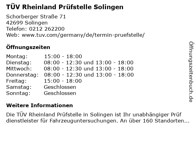 Branchen & Suchbegriffe zu TÜV Rheinland Prüfstelle Solingen:prüfstelle, rheinland, tüv |