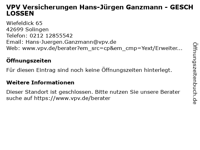 | VPV Versicherungen Hans-Jürgen Ganzmann - GESCHLOSSEN anrufen | |