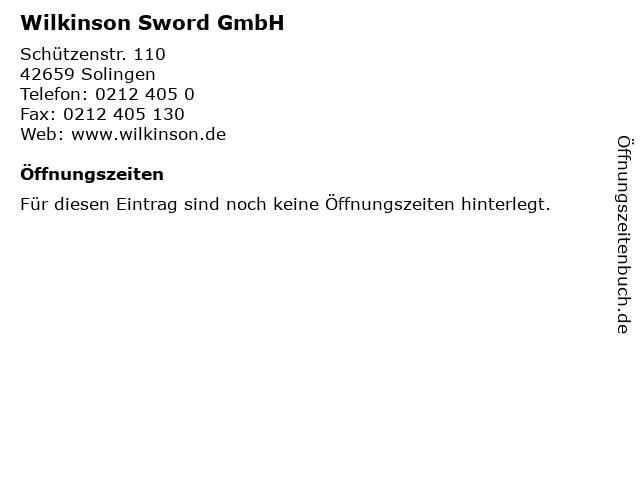 Öffnungszeiten Wilkinson Sword GmbH in Solingen anzeigen | |