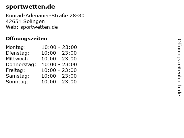 | Öffnungszeiten sportwetten.de in Solingen anzeigen | |