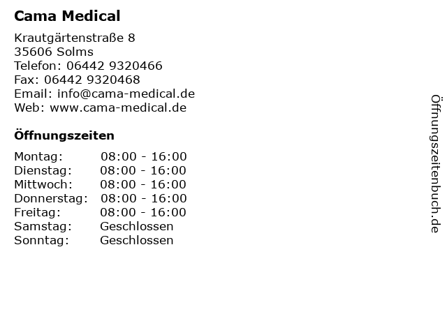 | Öffnungszeiten Cama Medical in Solms anzeigen | |