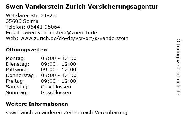 Branchen & Suchbegriffe zu Swen Vanderstein Zurich Versicherungsagentur:herbert, swen, vanderstein, versicherung, versicherungsagentur, versicherungsvertreter, zurich |