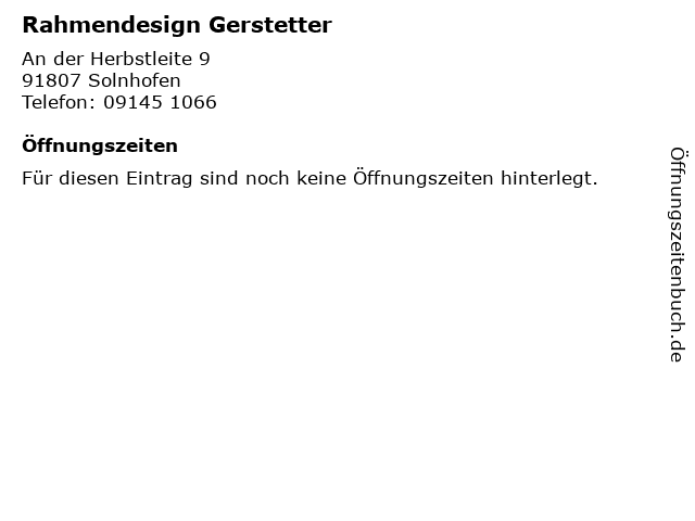 | Öffnungszeiten Rahmendesign Gerstetter in Solnhofen anzeigen | |