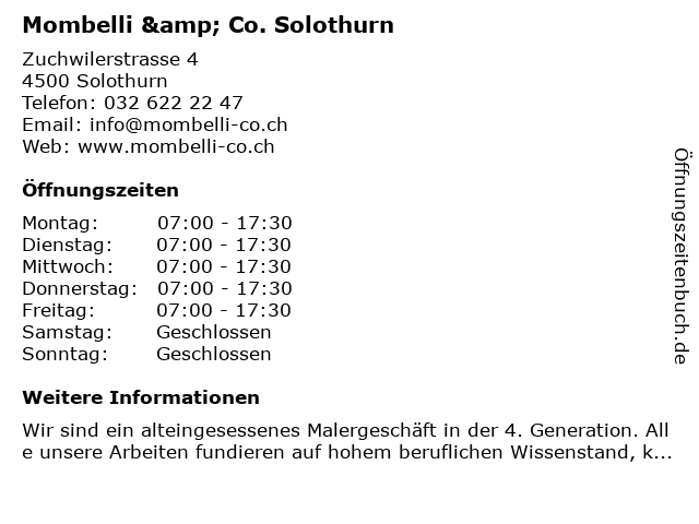 | Öffnungszeiten Mombelli & Co. Solothurn in Solothurn anzeigen | |