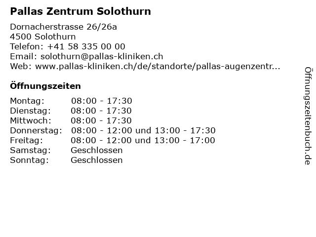 | Öffnungszeiten Pallas Zentrum Solothurn in Solothurn anzeigen | |