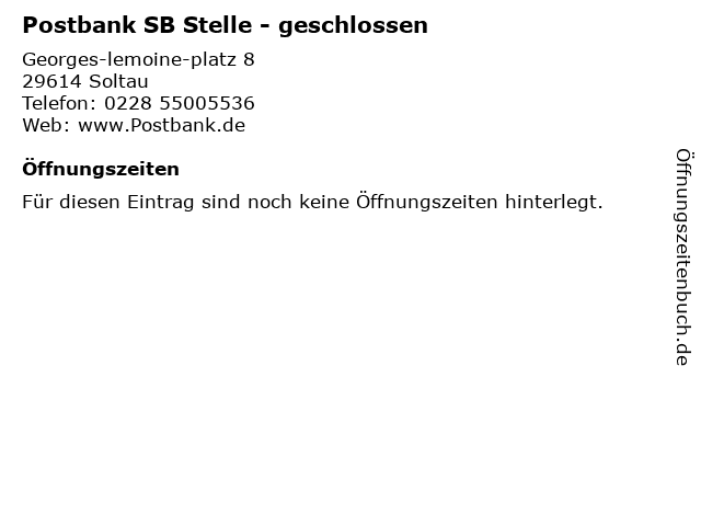 | Postbank SB Stelle - geschlossen anrufen | |