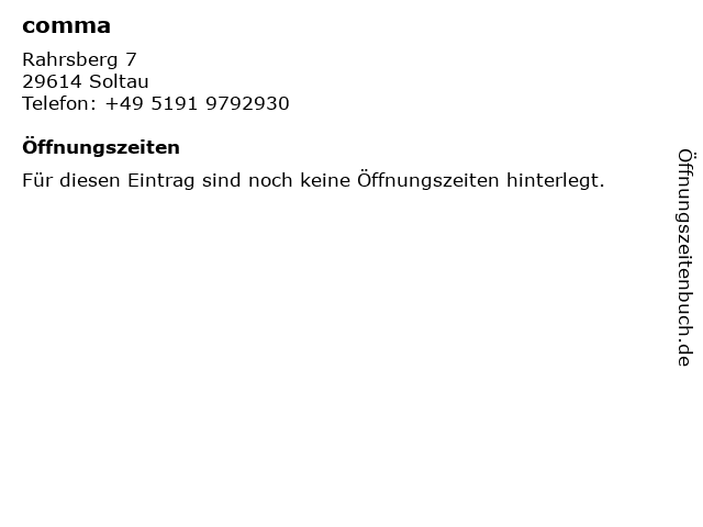 | Öffnungszeiten comma in Soltau anzeigen | |