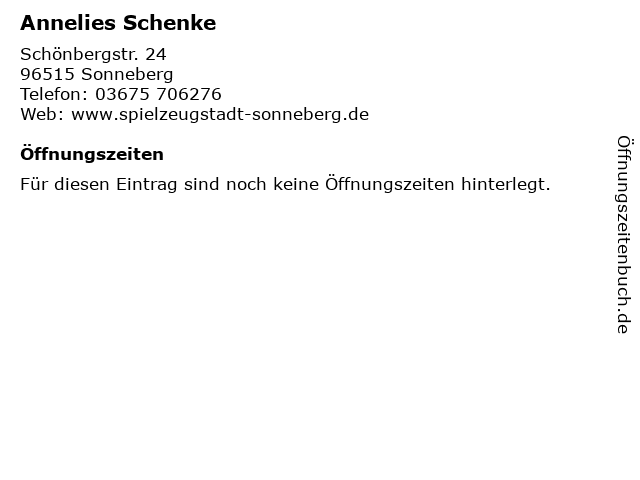 | Öffnungszeiten Annelies Schenke in Sonneberg anzeigen | |