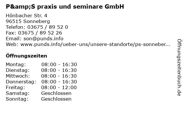 3 Cornelia Müller-Ortelbach Seminare und Beratung (Entfernung: 4,59 km) Schöne Aussicht 47, 96515 Sonneberg 5 GeAT - Gesellschaft für Arbeitnehmerüberlassung Thüringen AG (Entfernung: 2,11 km) Bahnhofstraße 43, 96515 Sonneberg 6 |