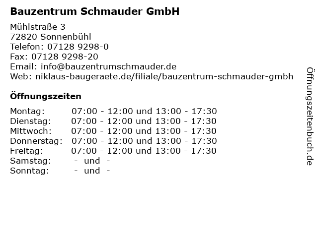 | Öffnungszeiten Bauzentrum Schmauder GmbH in Sonnenbühl anzeigen | |
